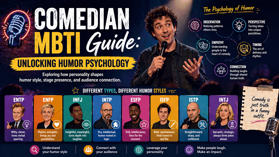 The Myers-Briggs Type Indicator (MBTI) is a tool designed to help individuals understand their psychological preferences. It is useful for self-awareness, career planning, and improving interpersonal relationships. Yet, when applied to complex fields like comedy, the four letters are merely a starting point. To truly grasp the nuances of a comedian mbti profile, one must return to the Jungian cognitive functions. These functions explain the mental processes behind why a comedian writes jokes a certain way, how they handle stage fright, and how they connect with an audience. This guide prioritizes function dynamics over static labels to offer actionable insights for performers and enthusiasts alike.